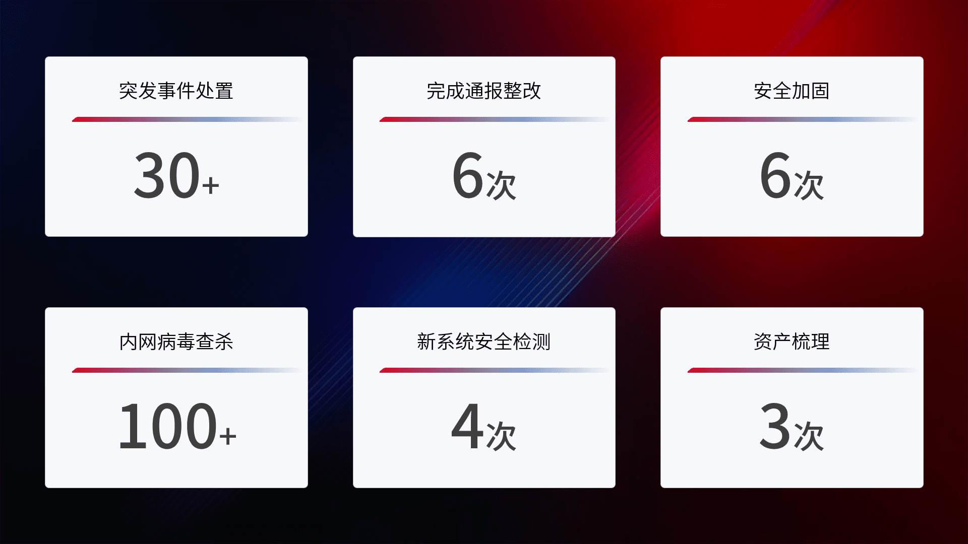 网络安全加固与风险管理:通过技术加固手段,,如加强区域隔离,,,缩减攻击内网横向移动的范围;优化现有网络安全管理制度,,降低网络威胁暴露面,,,,减少被黑客攻击的可能性。。